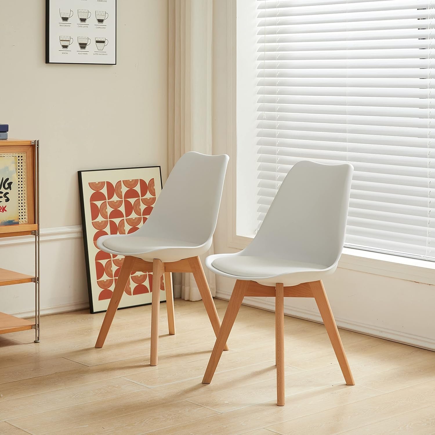 Dining Chair with Solid Wood Legs and Cushioned Pad, Contemporary Designer for Lounge, Office, Kitchen