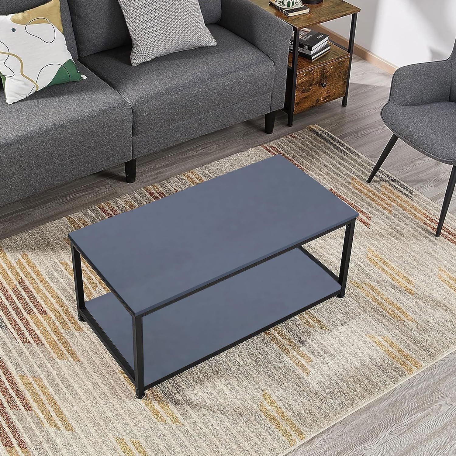 Large Coffee Table | Industrial Coffee Table for Living Room | Stylish and Durable 2 Tier Wooden Coffee Table with Storage & Metal Legs | Perfect for Any Room 100X50X45Cm (Grey)