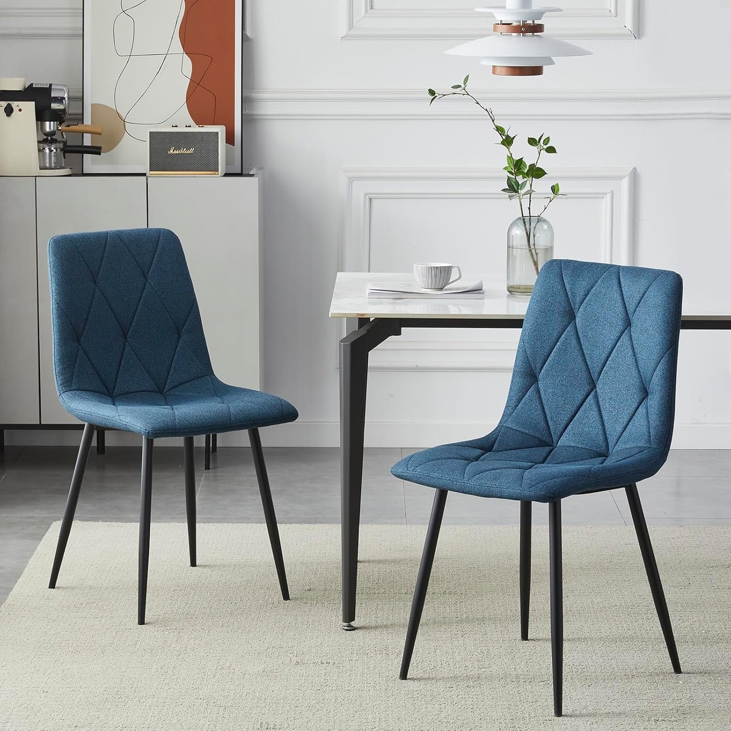 Be the first to review “Set of 4 Dining Chairs for Dining Room Living Room, Fabric Kitchen Chairs Set with Upholstered Seat Backrest Solid Metal Legs, Blue” Cancel reply