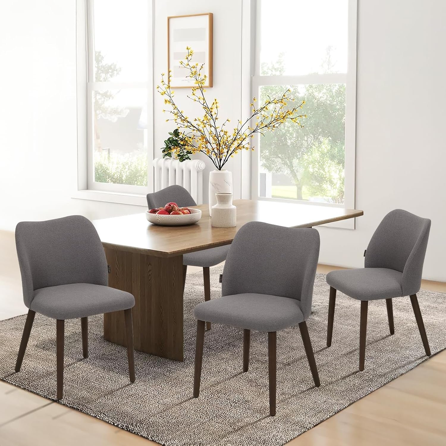 Upholstered Dining Chairs Set of 4, Modern Fabric Dining Room Kitchen Side Chair with Padded Seat and Wood Legs for Restaurant/Cafe, Light Grey